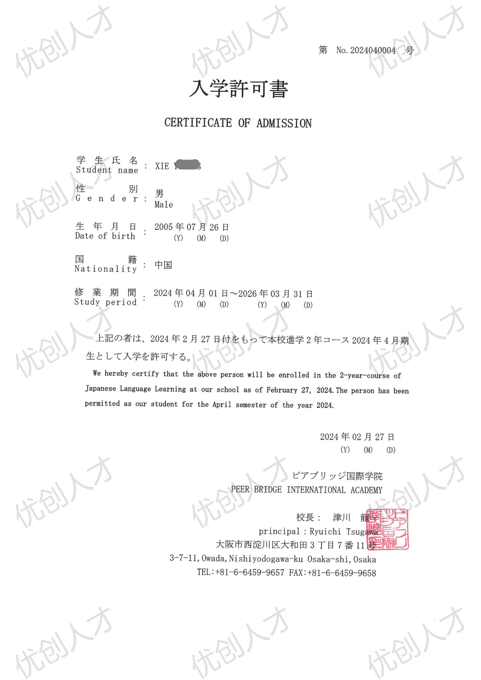 【日本留学】解同学【ピアブリッジ国際学院】